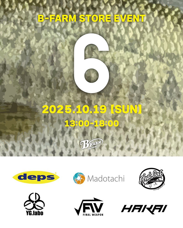 東海地区のルアーショップB-FARMで開催される6社合同ストアイベントに出展します。