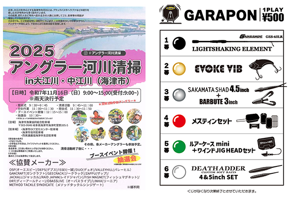 2025年11月16日(日)に岐阜県海津市でアングラーによる清掃活動が行われます。