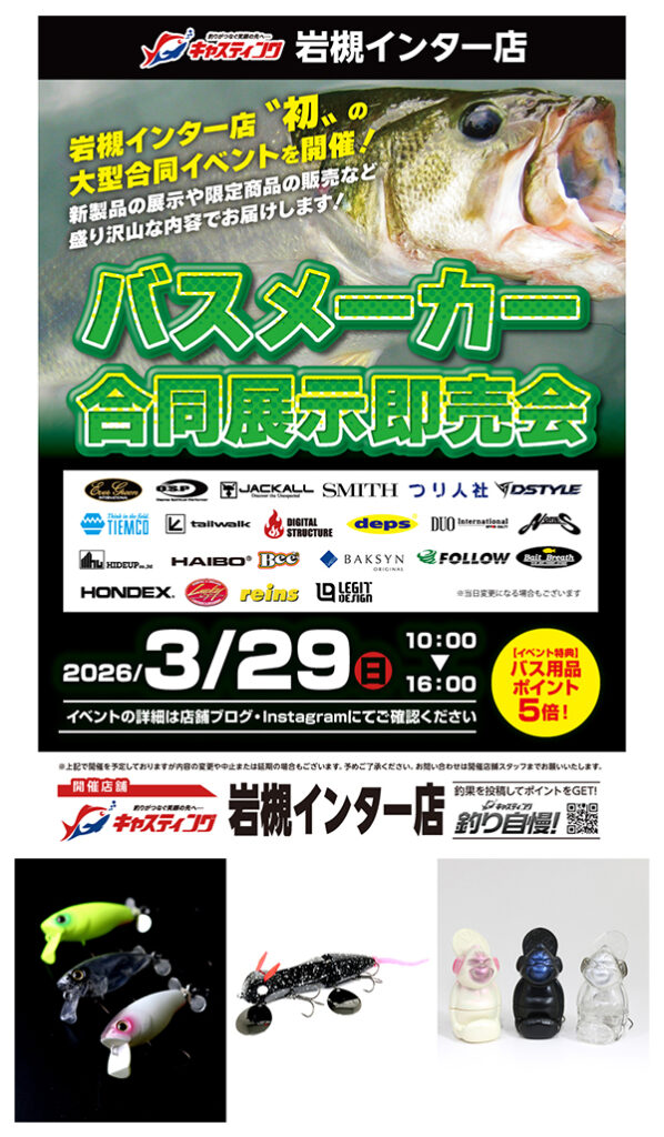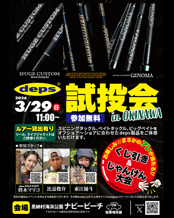 デプスブースではキムケン印のスリザーラット、イベント限定カラーのビリケンルアーやバズジェットトラウトモデルが販売します。