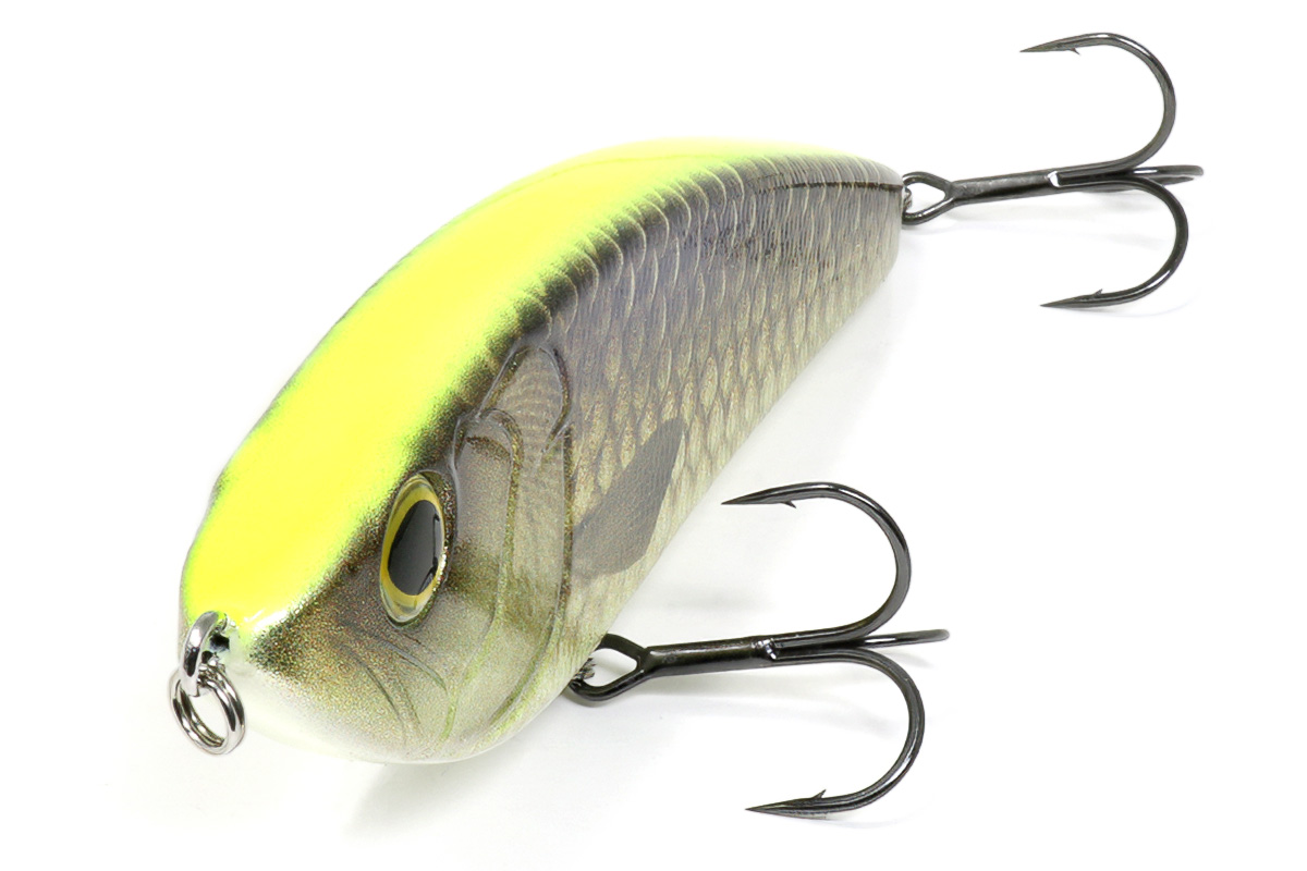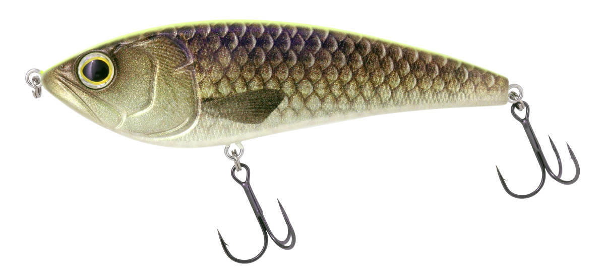特徴的なフラットサイドボディから生み出すトルクフルな水押し波動による圧倒的なアピール力を持ち備え、ハイスピードやラフウォーターでもミスダイブが皆無となるセッティングにより、水面からサブサーフェスに張り付くようなアクションで、ベイトを追い回すフィッシュイーターを魅了してくれます。またロッドアクションやリーリングで水面から飛び跳ねさせたりワイドなダートアクションを多彩に操れるペンシルベイトです。