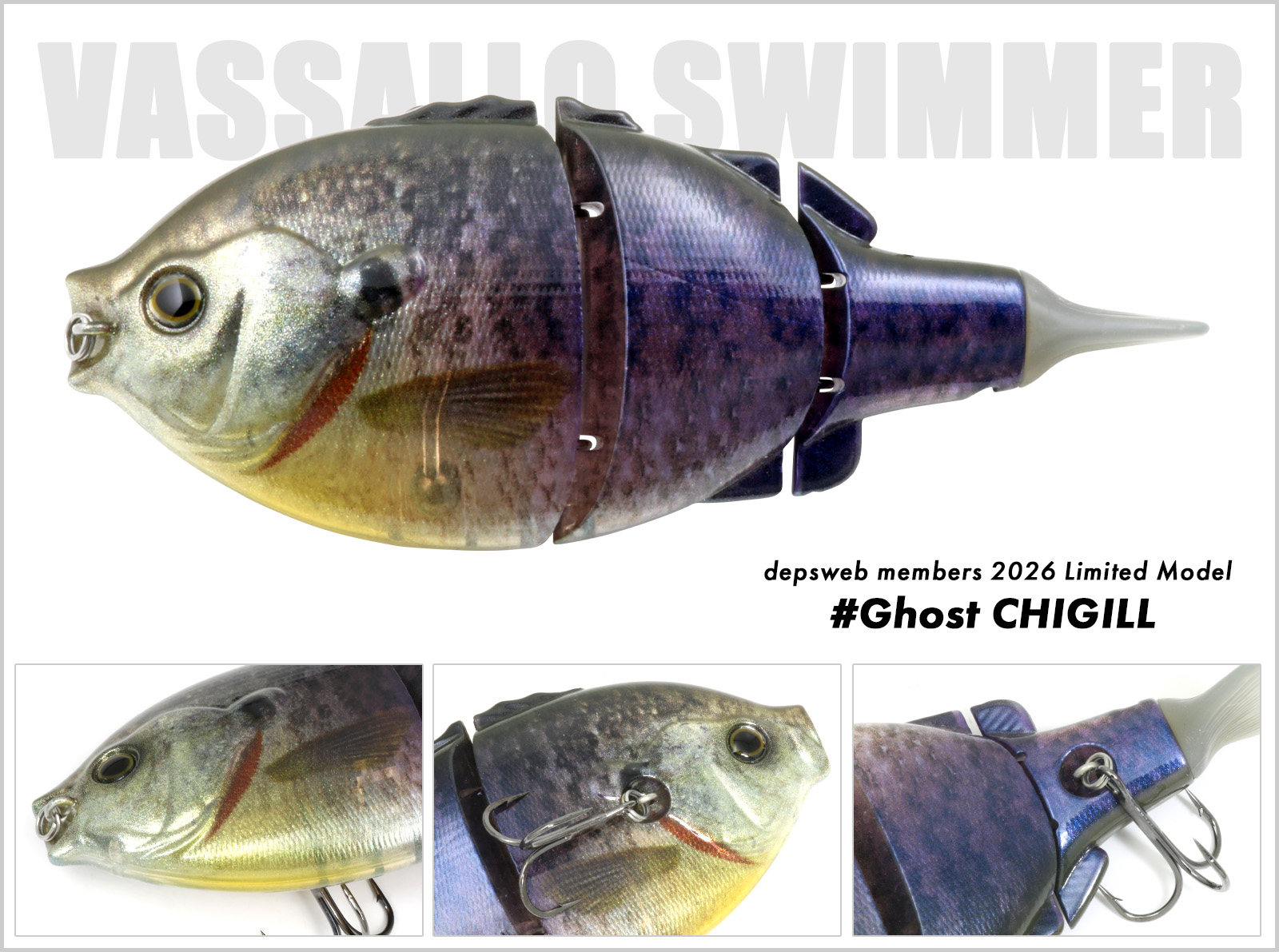 ブルーギルやフナなど体高のある魚種が横たわり瀕死の状態を演出する、フラットワイドな3ピースジョイント『バサロスイマー』。