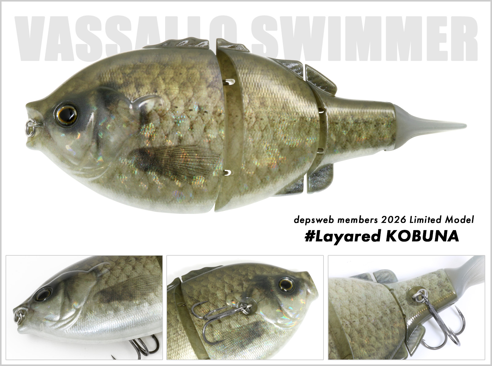 ベース塗装・透明ホログラム・超精密プリントを重ね、小鮒の立体感とリアルさを表現したレイヤードカラー。