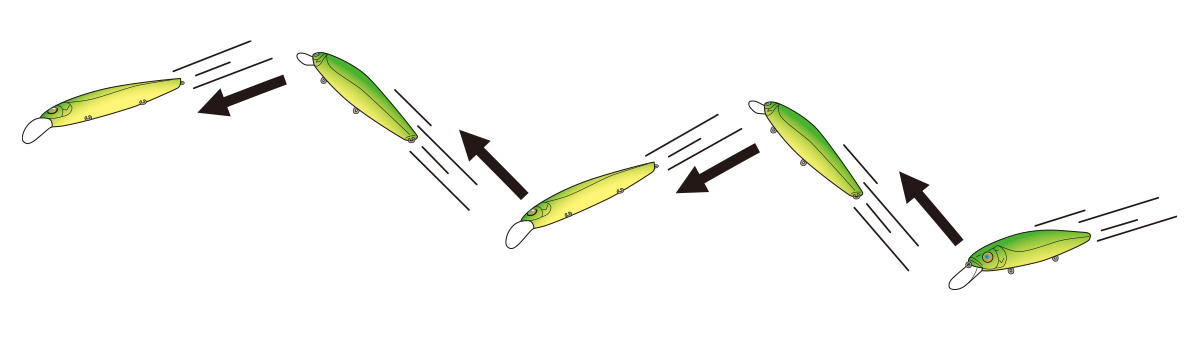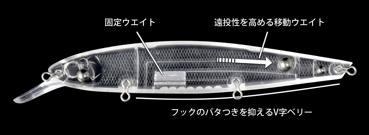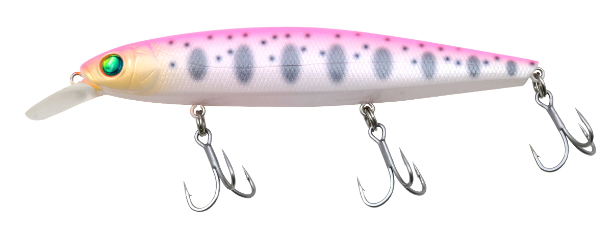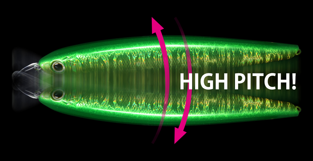 スローシンキングだからこそ、フローティングやサスペンドタイプでは届かないレンジをカウントダウンで狙え、フローティングモデルよりもハイピッチなローリングアクションのステディリトリーブや、キレ味鋭いトリッキーなダートをみせるトゥイッチやジャークで、そのレンジに潜むフィッシュイーターのストライクゾーンを直撃しバイトへと持ち込んでくれます。